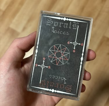 CZ: První kazetou kterou jsem si chtěl poslechnout je VOICES od SORATH. Sorath je česká black metalová kapela, která se v západních čechách stala v undergroundu už legendou. V minulosti jsem již psal recenzi na jejich nejnovější album “Orízontas Gegonóton”, které patří mezi mé nejoblíbenější desky vůbec. VOICES mě velice uchvátilo. Líbí se mi ta dravost a ta energie kterou deska má. Je tam spoustu skvělých melodií a brutální vokál se kterým se valí blast beatové bicí a hluboká basa. Je to velice skvělý kus hudby, ke kterému se rozhodně budu vracet.